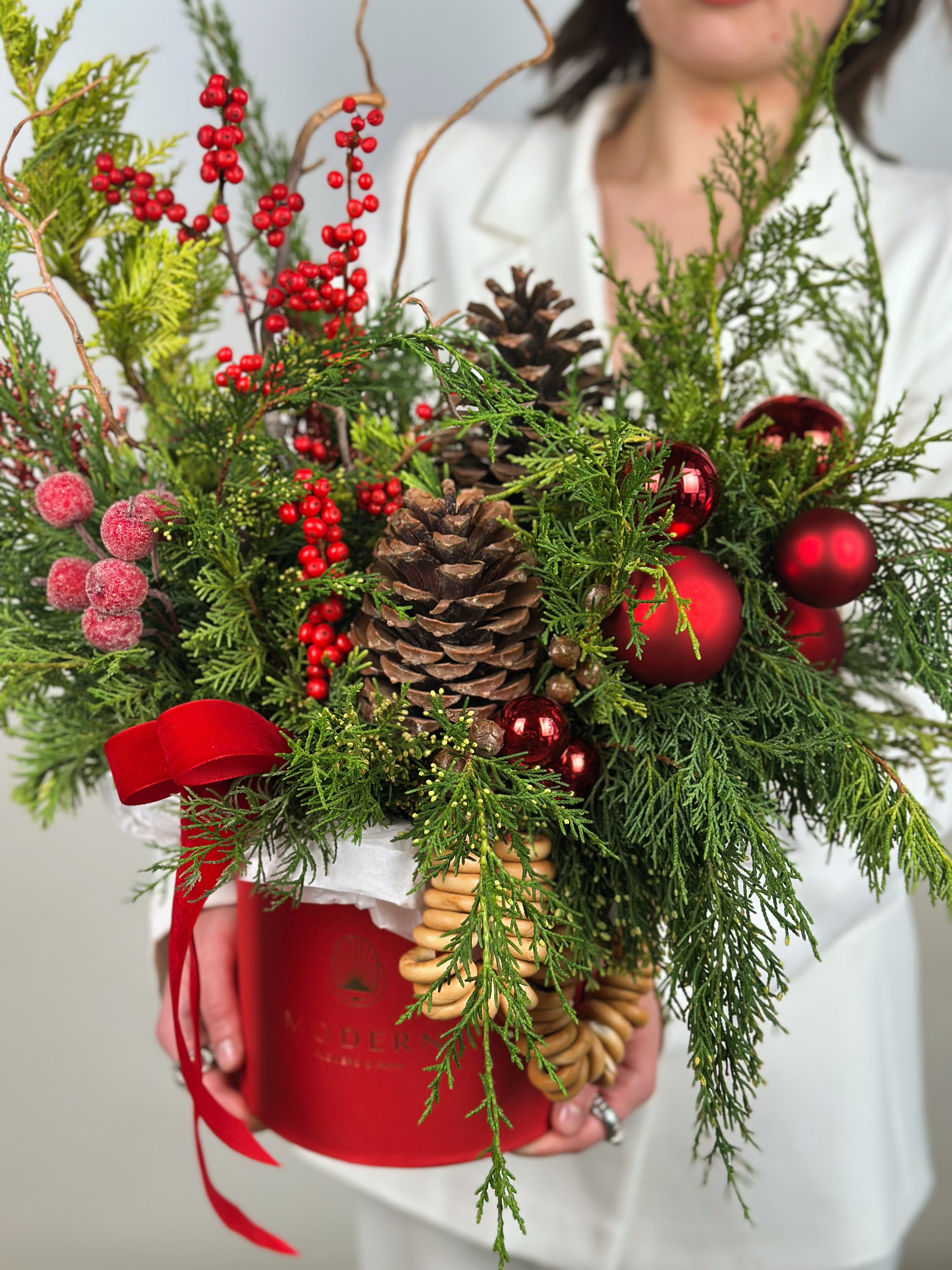 БОЛЬШАЯ КОМПОЗИЦИЯ ИЗ ХВОИ И ИЛЕКСА В РУССКОМ СТИЛЕ