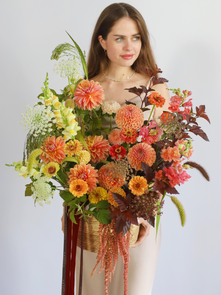 (!) В составе данного букета использованы сезонные летние цветы, мы соберем для вас похожий букет из имеющихся цветов в похожей стилистике и цветовой гамме.