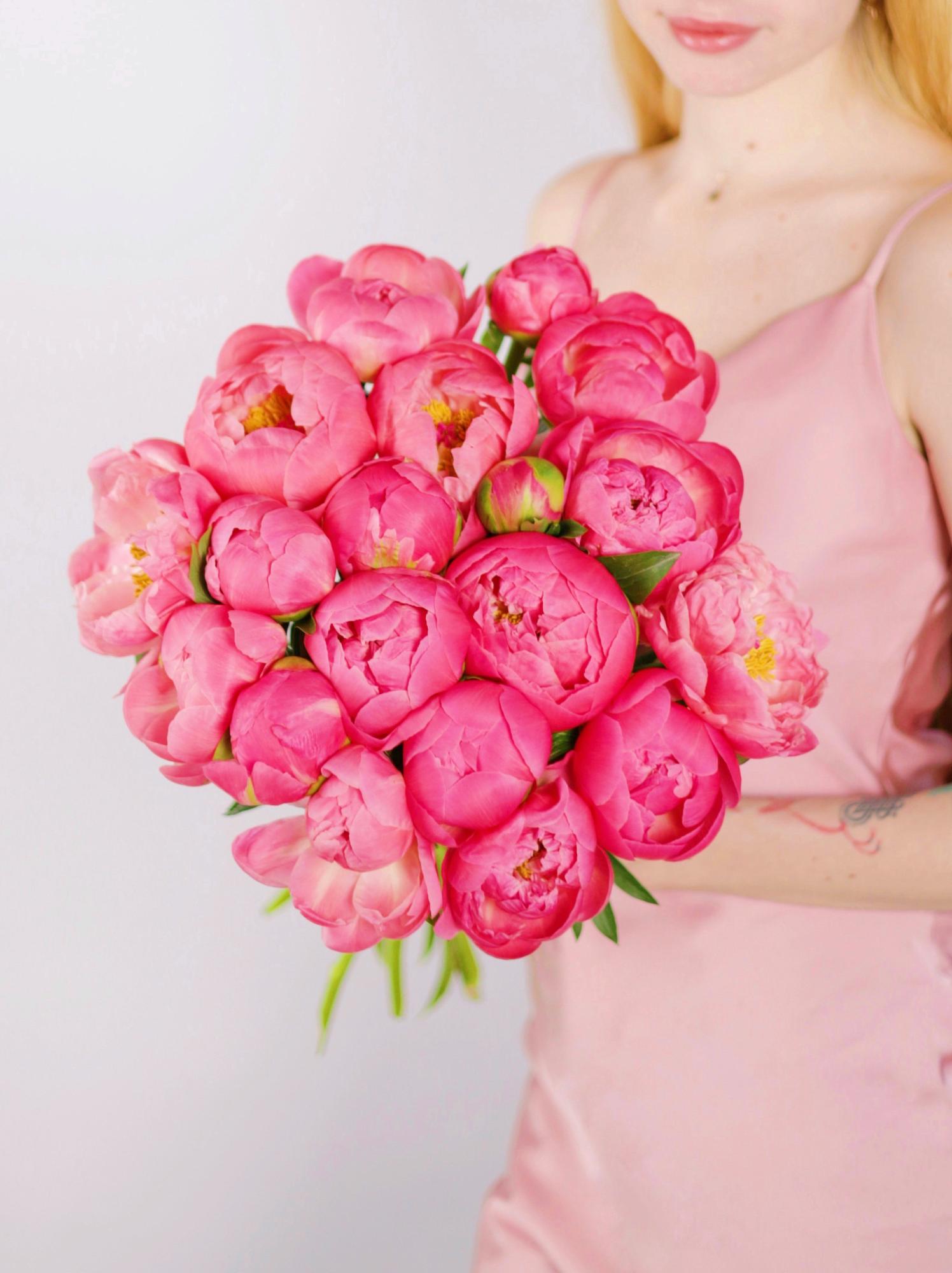 Представляем вашему вниманию великолепную монокомпозицию из 19 роскошных пионов — воплощение природной красоты и элегантности.
