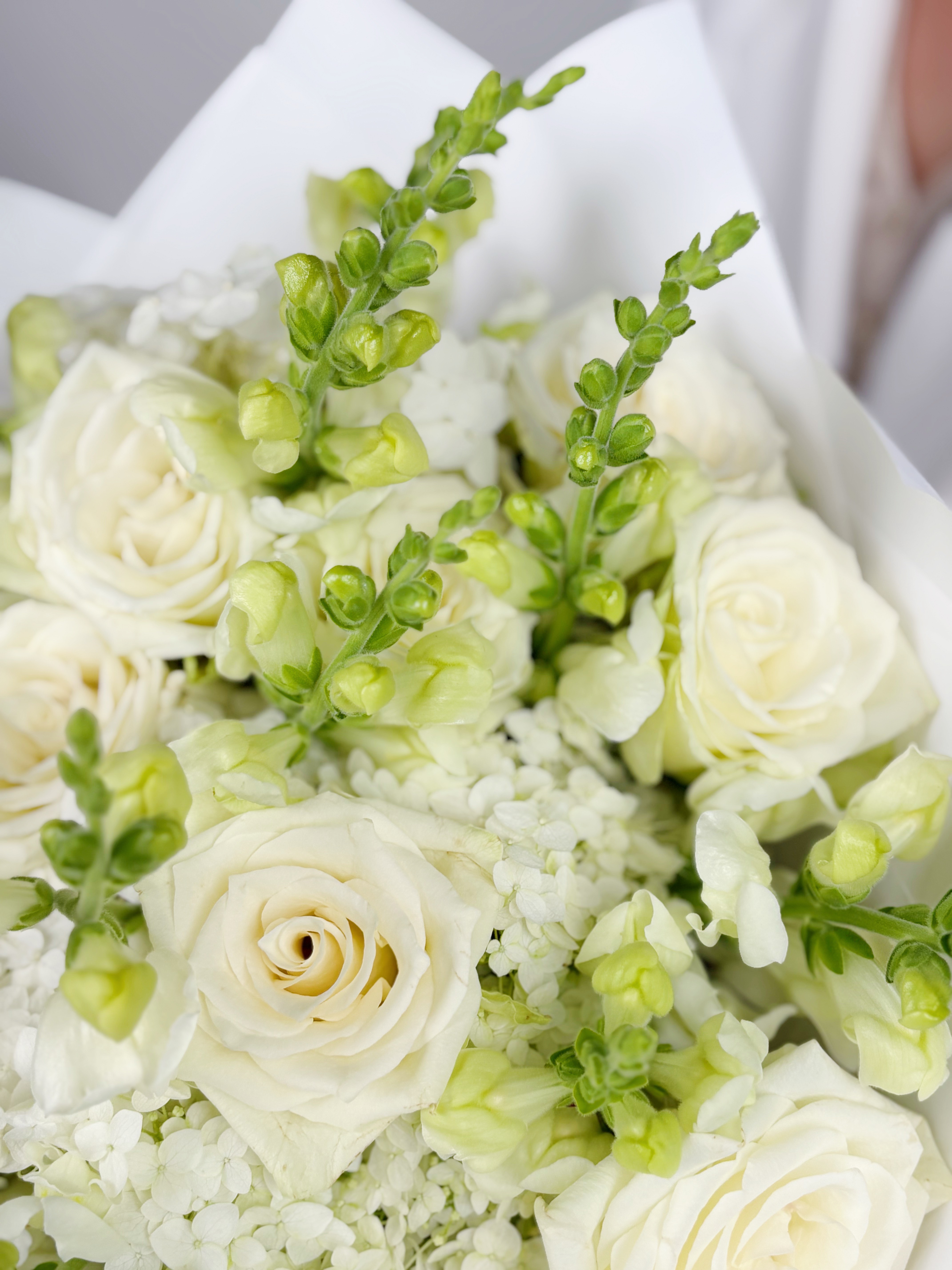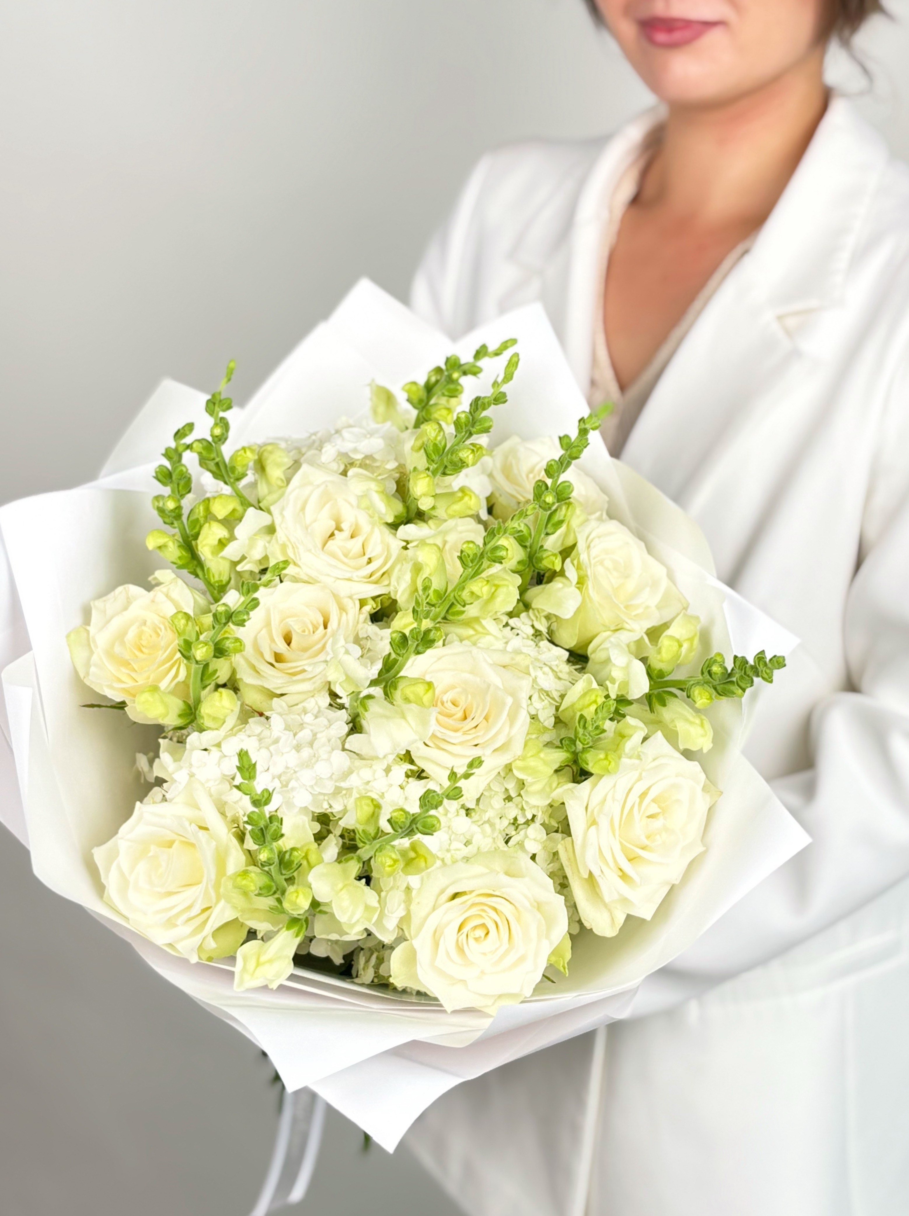 —БУКЕТ С БЕЛОЙ РОЗОЙ И ГОРТЕНЗИЕЙ