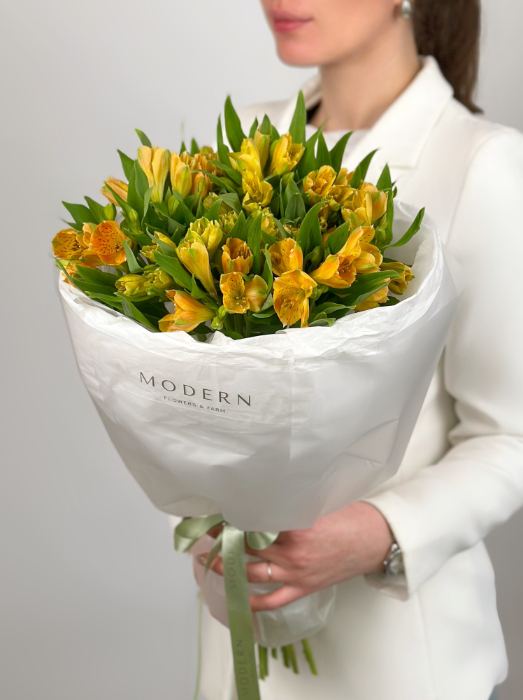 БУКЕТ ИЗ ЖЕЛТО-ОРАНЖЕВЫХ АЛЬСТРОМЕРИЙ
