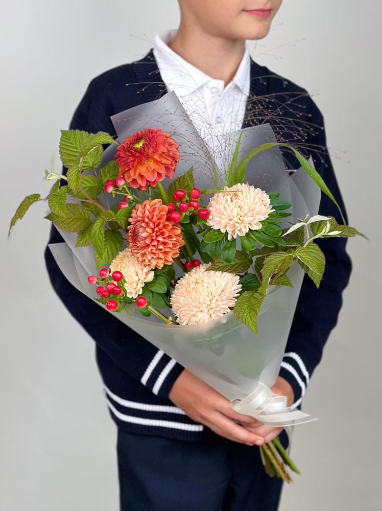 БУКЕТ С ГЕОРГИНАМИ И АСТРОЙ