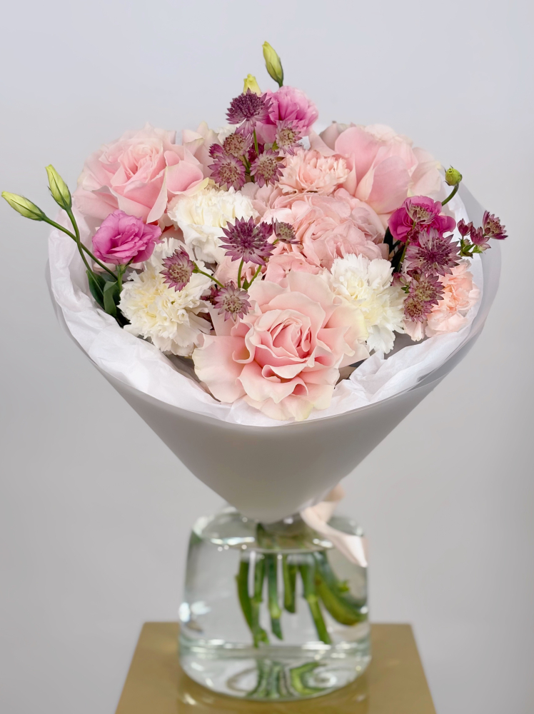 КРУГЛЫЙ БУКЕТ С ПИОНОВИДНЫМИ РОЗАМИ