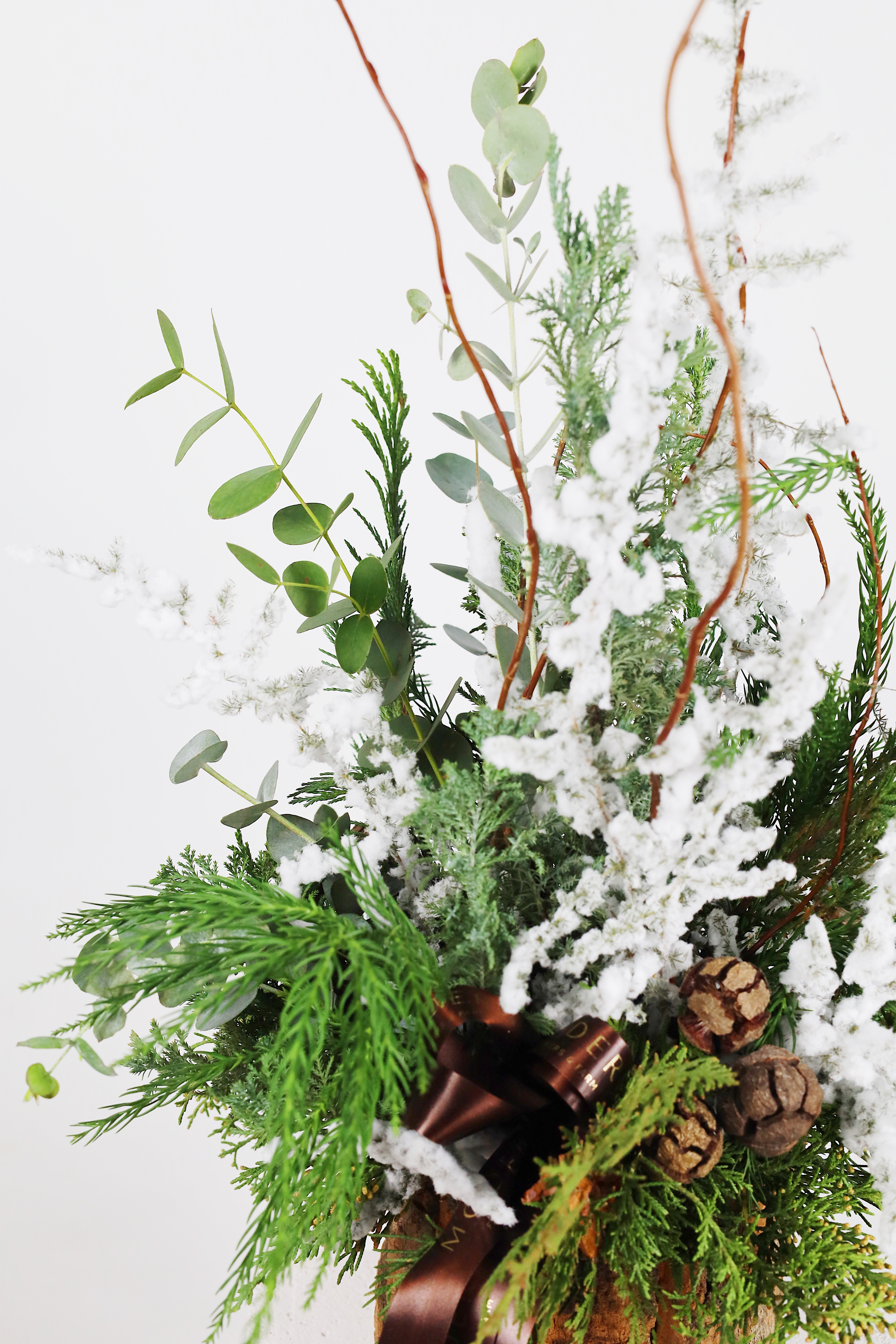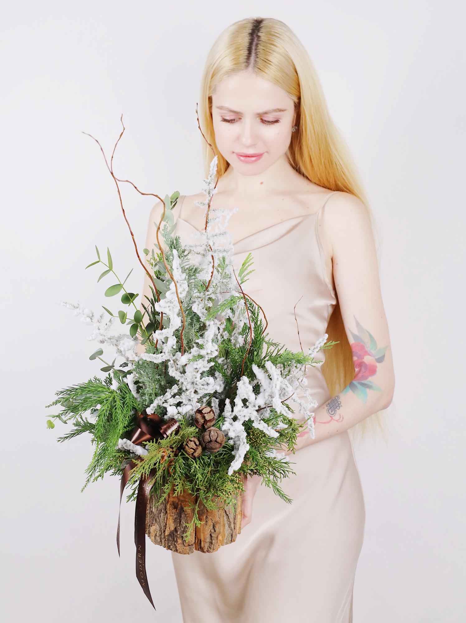 —ХВОЙНАЯ КОМПОЗИЦИЯ В ДЕРЕВЯННОМ КАШПО