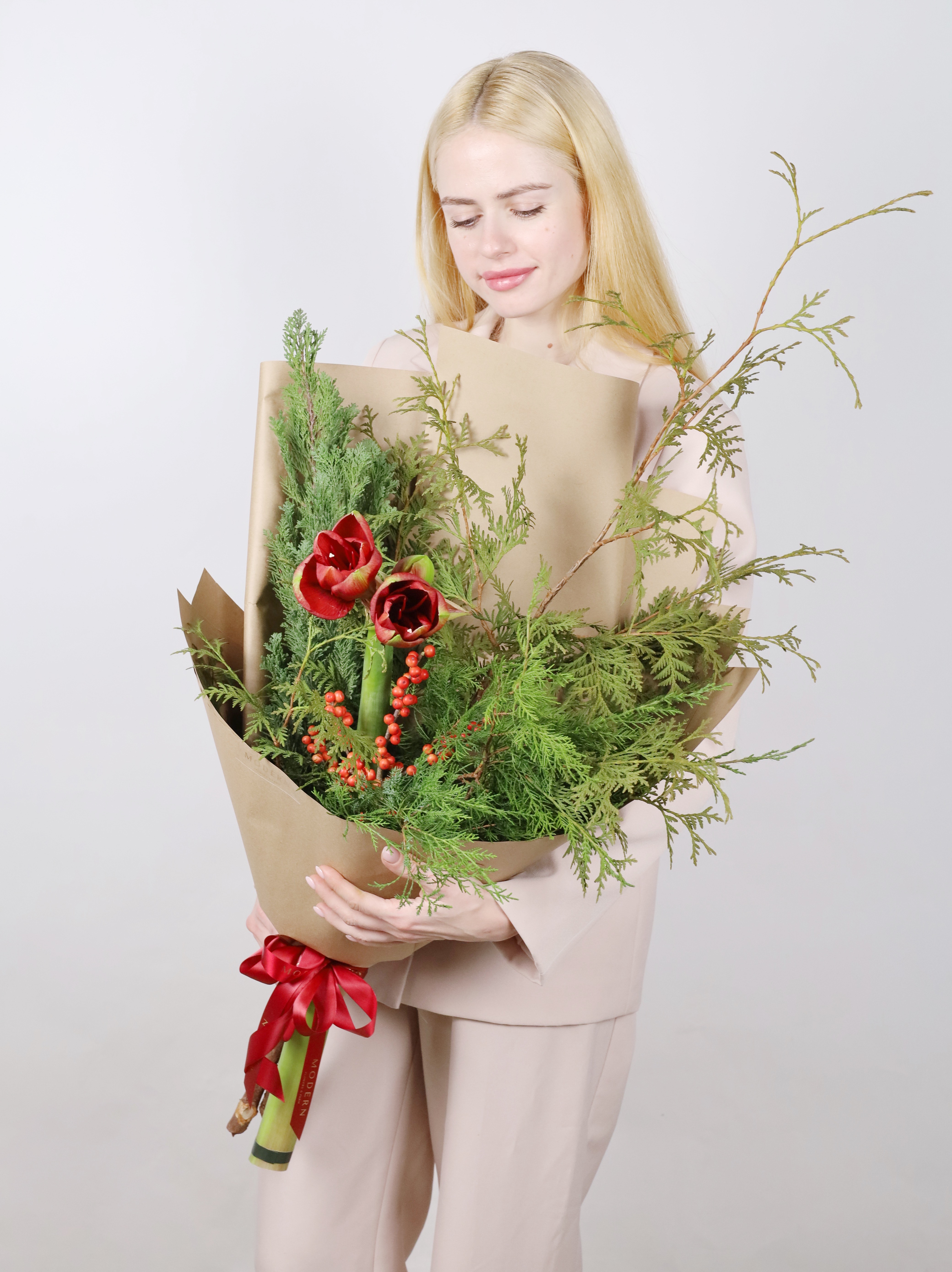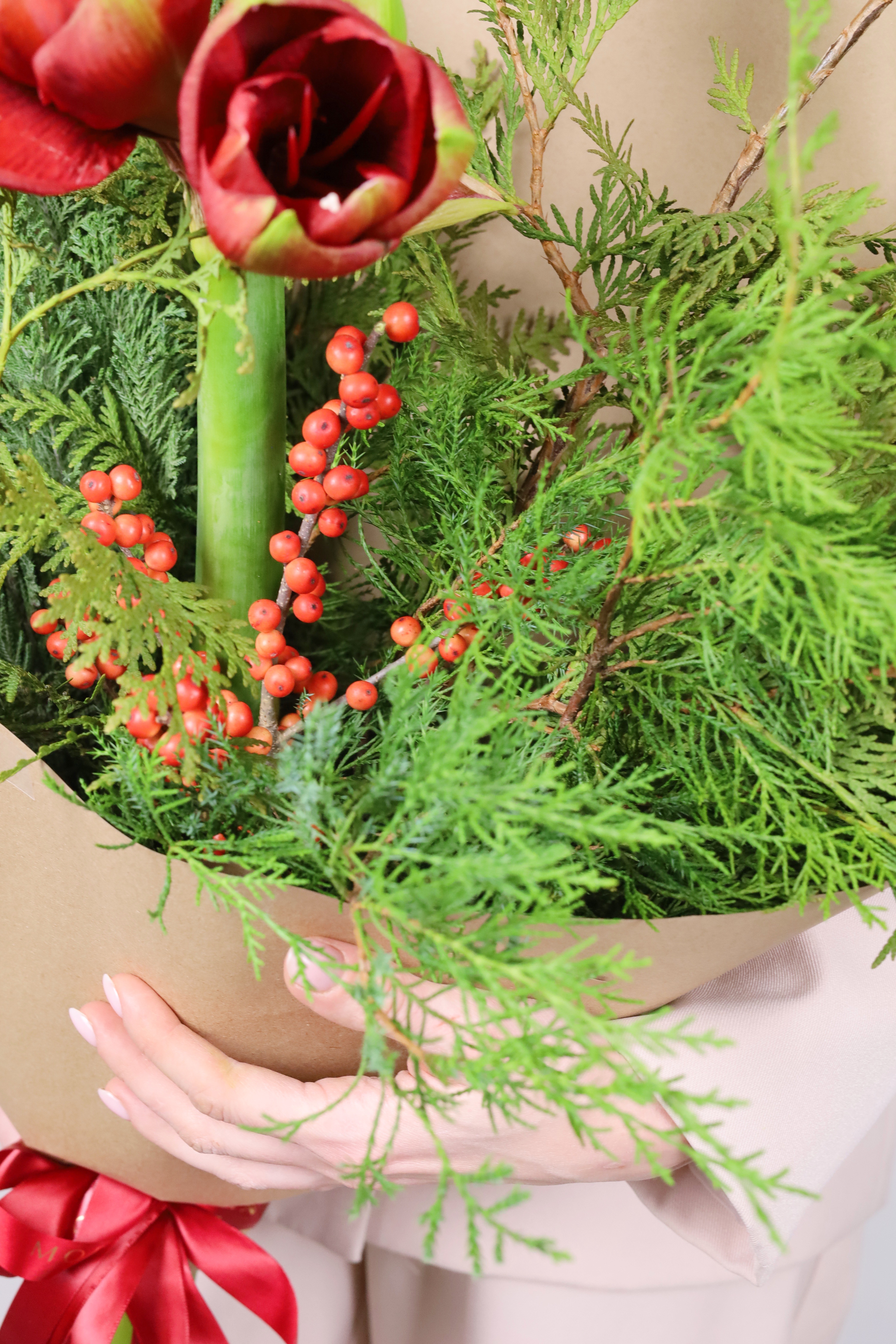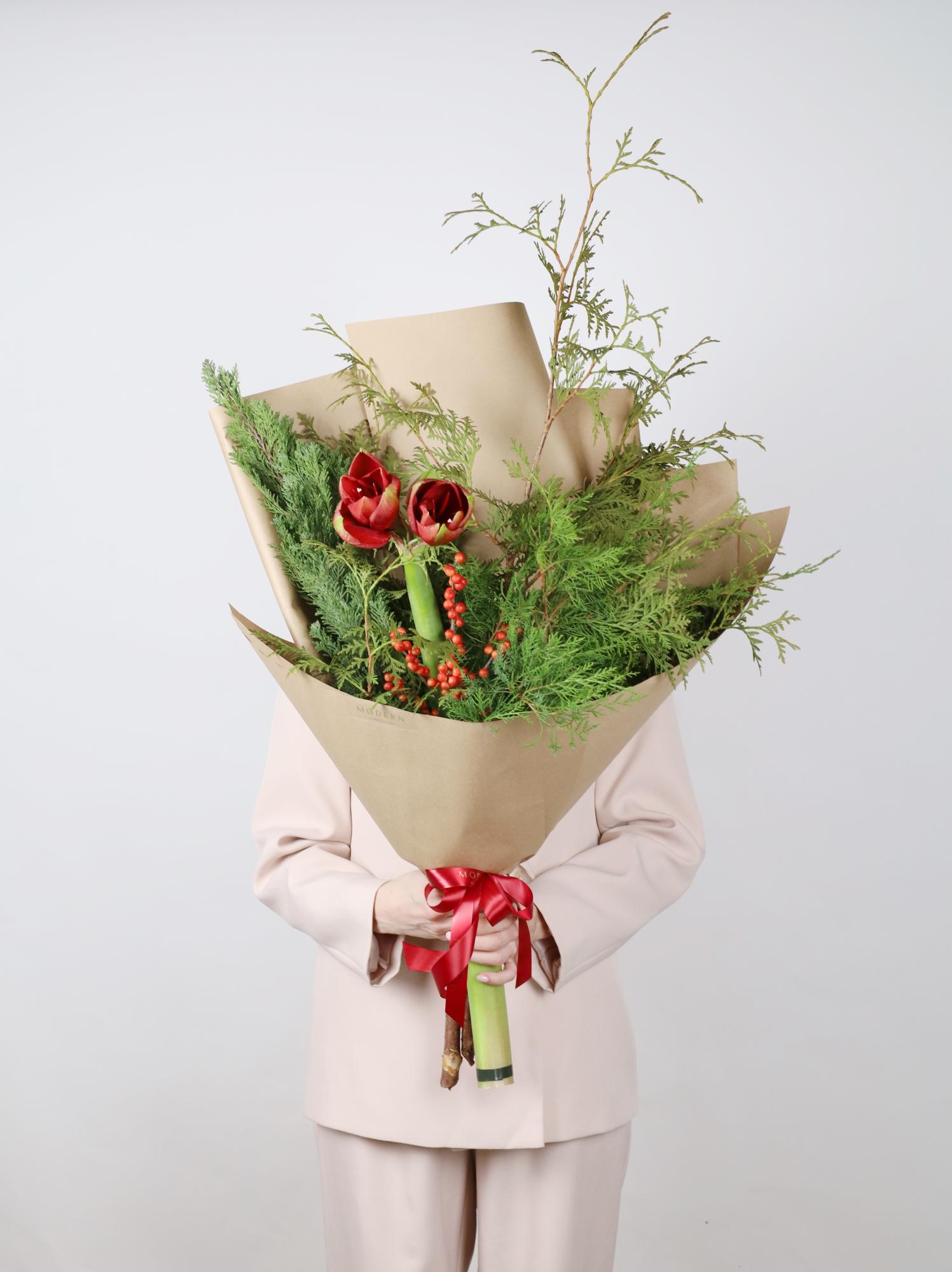 —ХВОЙНЫЙ МИКС С ИЛЕКСОМ И АМАРИЛЛИСОМ