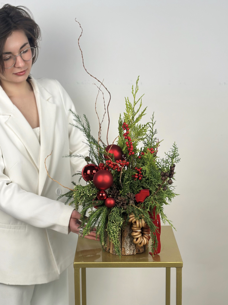КОМПОЗИЦИЯ ИЗ ХВОИ И ИЛЕКСА В РУССКОМ СТИЛЕ