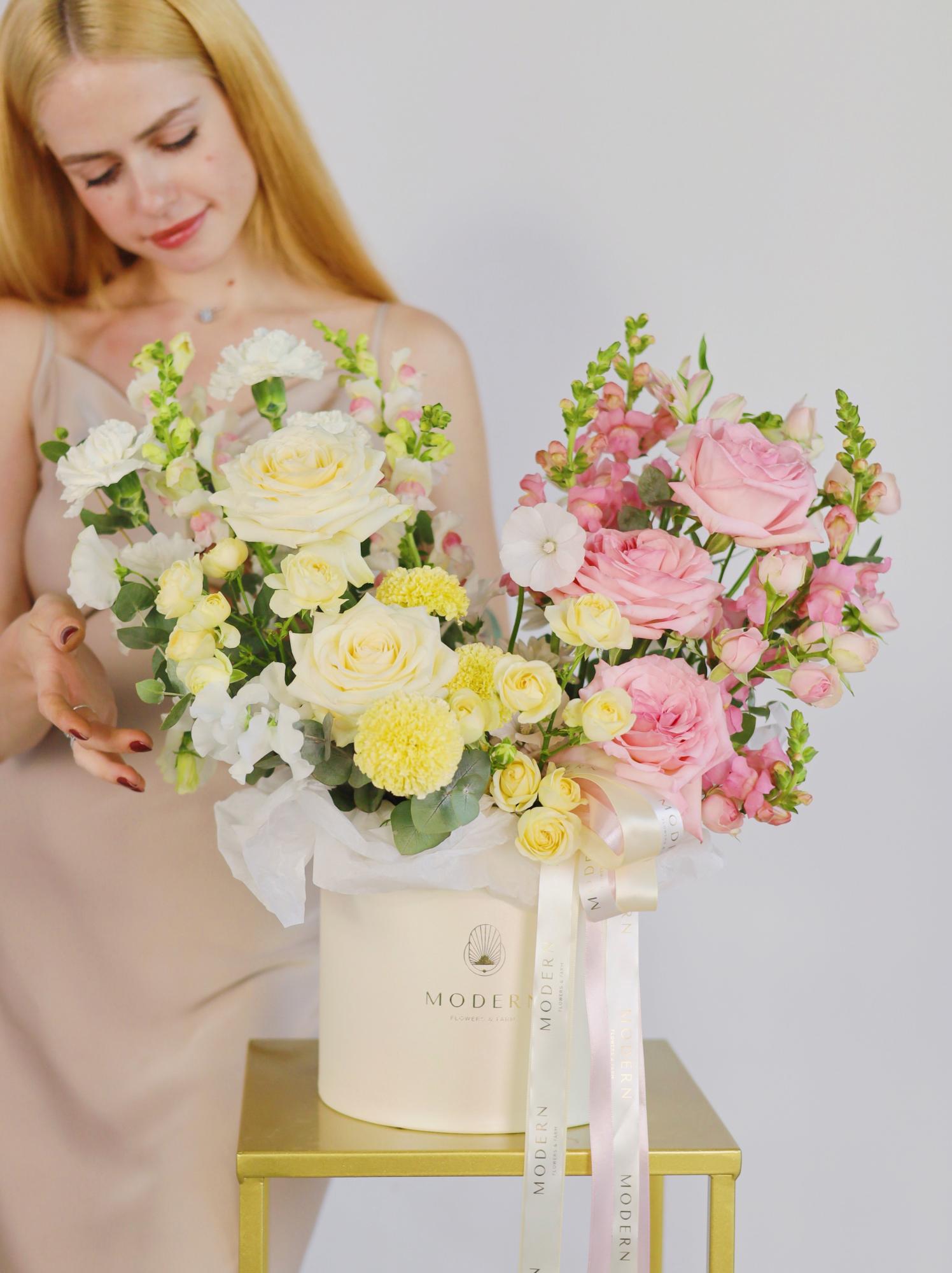 Состав букета или композиции может отличаться от фото на сайте, в зависимости от сезонности и наличия цветов, при этом мы всегда стараемся сохранить стилистику и цветовую гамму.