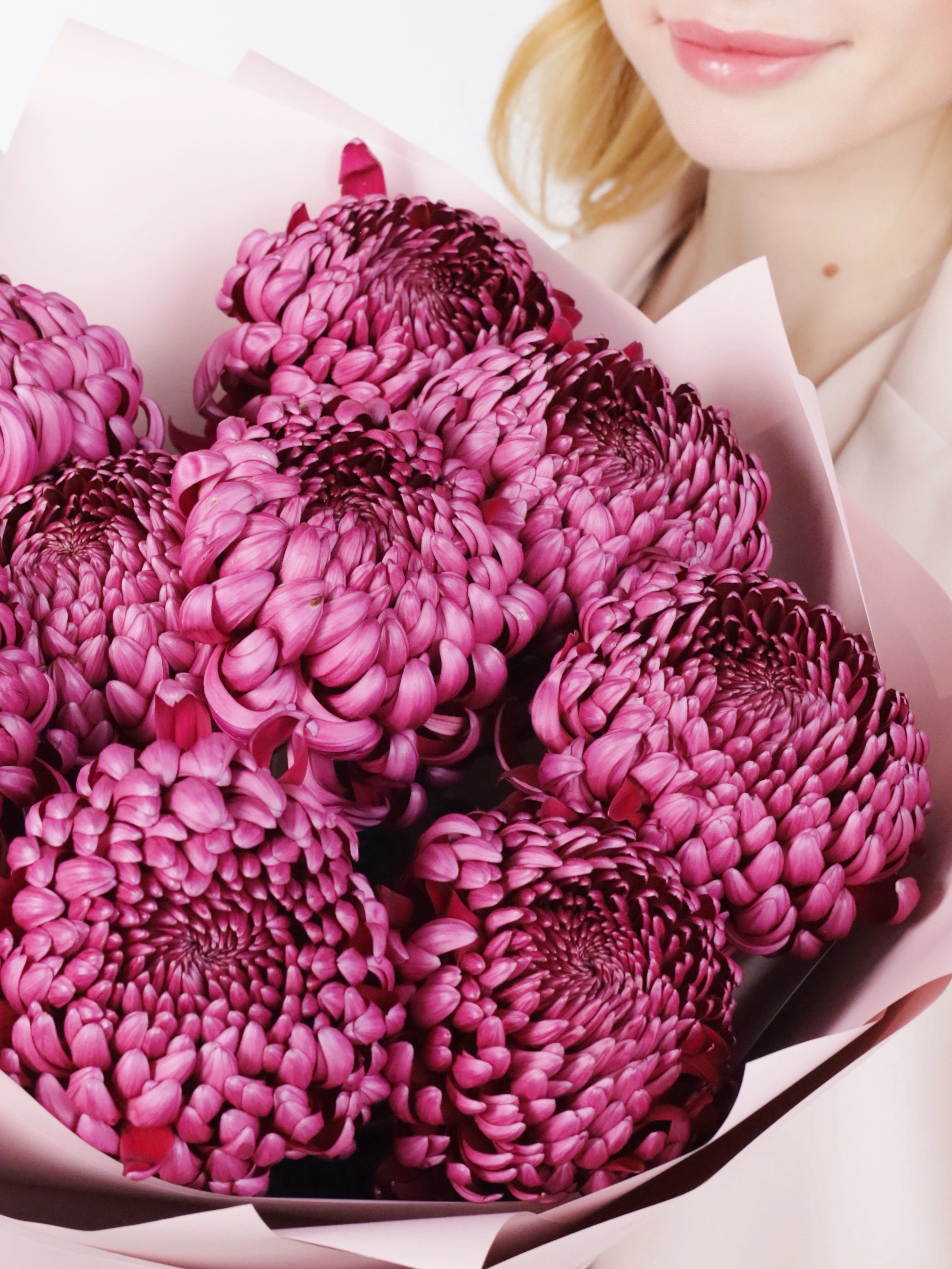 —КРУГЛЫЙ БУКЕТ ИЗ ХРИЗАНТЕМЫ БИГУДИ 9 ШТ