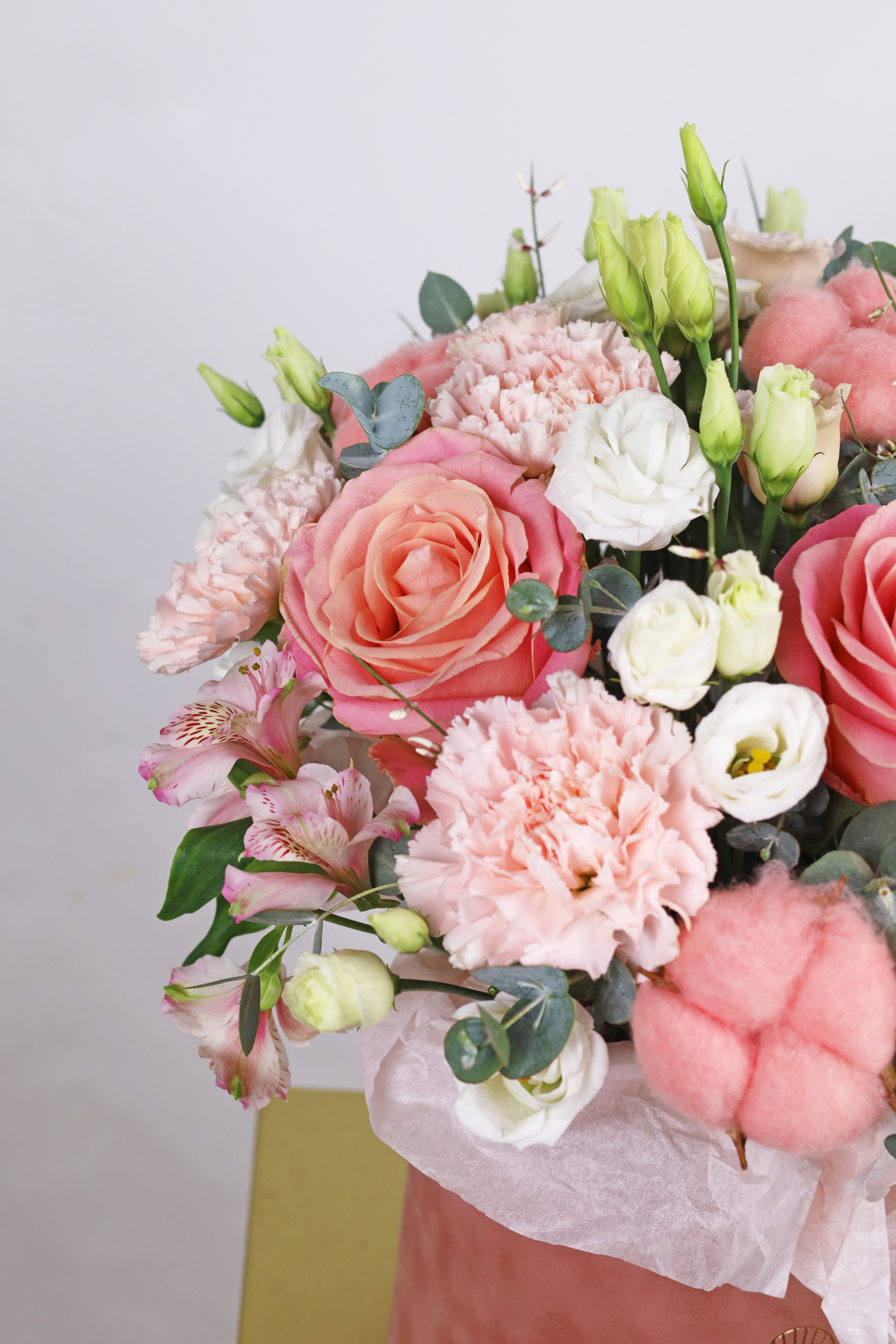 —НЕЖНАЯ КОМПОЗИЦИЯ В БАРХАТНОЙ КОРОБКЕ С РОЗОЙ