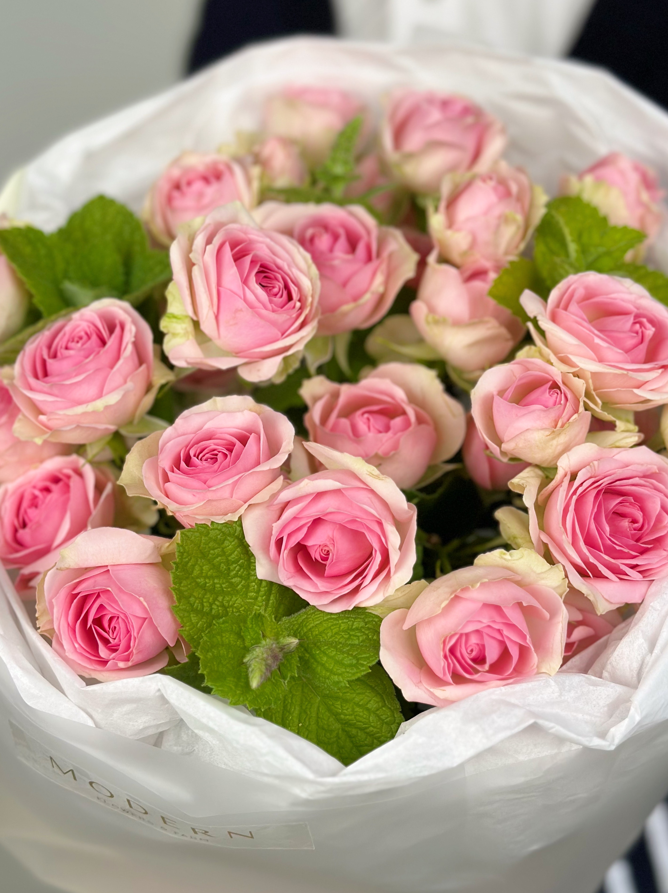 —НЕЖНЫЙ БУКЕТ С КУСТОВОЙ РОЗОЙ И МЯТОЙ