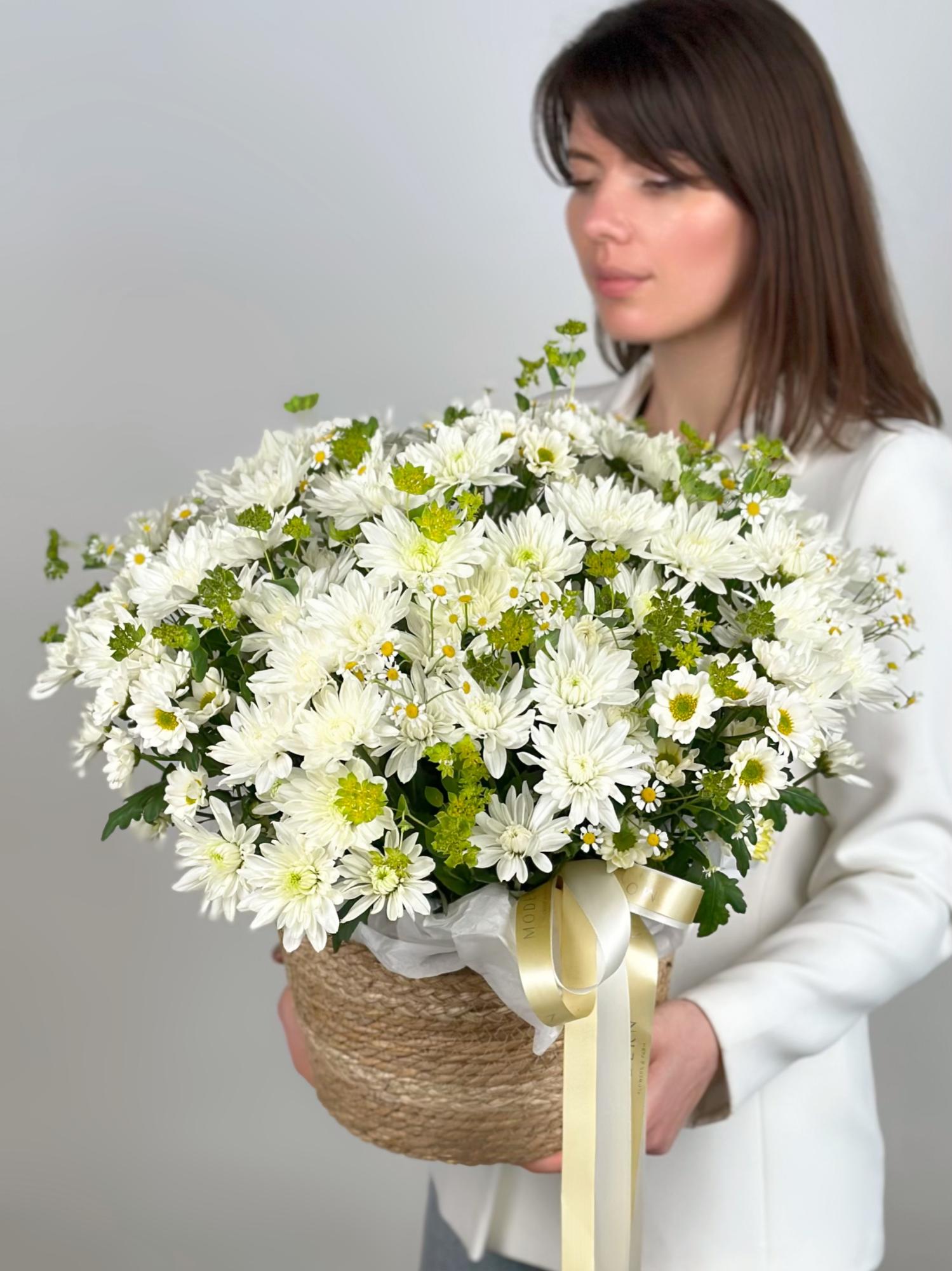 РОМАШКА, ХРИЗАНТЕМА В ПЛЕТЕНОЙ КОРЗИНЕ