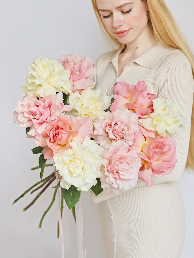 БУКЕТ 15 ПИОНОВИДНЫХ РОЗ CANDLELIGHT